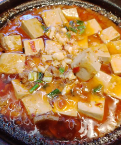 “胖外婆豆花牛肉”是一道以豆花和牛肉为主料的川菜,通常搭配一些调料和配菜一起...