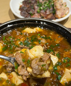 “胖外婆豆花牛肉”是一道以豆花和牛肉为主料的川菜,通常搭配一些调料和配菜一起...