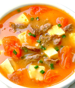 番茄酸汤牛肉可以搭配米饭或面条一起食用,口感酸甜可口。希望你能喜欢这道美味的菜肴!