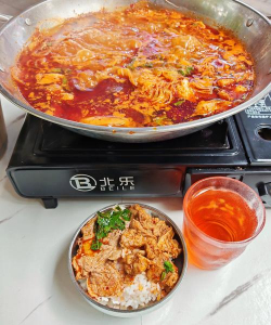 在火锅里涮牛肉时,可以根据个人口味和火锅类型(如麻辣、清汤、番茄、菌汤等)搭...