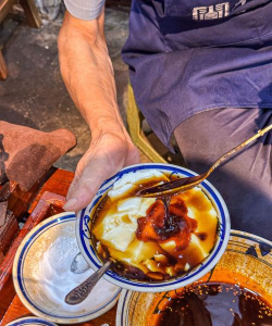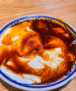 根据个人口味准备配料,如咸口:在豆腐脑上淋上酱油、香醋,撒些榨菜末、香菜、葱花,再来一勺辣椒油,香气扑鼻!甜口:直接撒上一勺白糖,简单的甜味能突出豆腐脑的豆香。