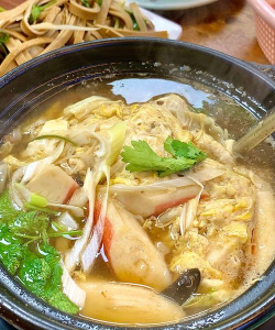 预处理食材:豆腐切大块焯水去腥,蔬菜类切丝备用。2. 砂锅煮制:砂锅加水或高汤煮沸,先放入豆腐煮至入味。3. 搭配食材:加入香菇、木耳、冬笋等蔬菜,调入生抽、醋、盐、胡椒粉调味。4. 勾芡收汁:用水淀粉勾芡,淋入打散的鸡蛋液,翻炒均匀。5. 装盘装饰:关火后淋上香油,撒上香菜末、葱丝,点缀红椒丝提色。