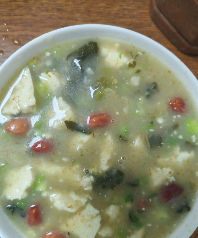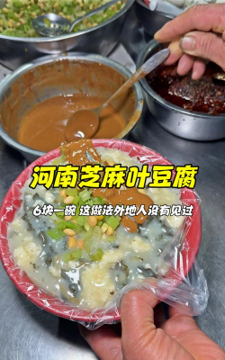 装盘:将做好的豆腐脑盛入碗中,撒上炒好的芝麻叶和拌好的黄豆芹菜,即可享用。