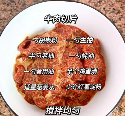 二、牛肉处理切片与腌制将牛肉切成薄片(2-3毫米厚),与纹理呈90度夹角横切,避免切碎。