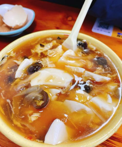 制作步骤:锅中倒入少许油,放入香菇丁爆香,加入生抽、香醋、盐,倒入鸡汤或清水,煮沸后关火。盛出后淋上几滴香油,再来点辣椒油,搅拌均匀即可。