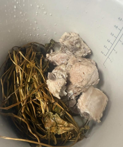 4. 加入鱼腥草:当排骨和萝卜炖煮约30分钟左右时,加入洗净的鱼腥草,继续用小火炖煮约10分钟,让鱼腥草的味道充分融入汤中。
