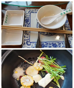 在火锅里涮牛肉时,可以根据个人口味和火锅类型(如麻辣、清汤、番茄、菌汤等)搭...