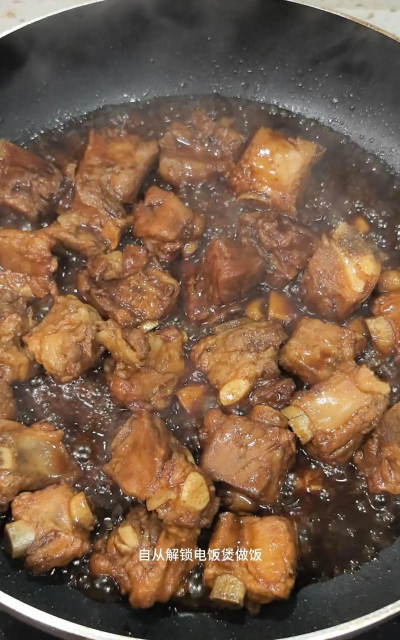 糖色炒制: 糖需小火慢炒至焦糖色,避免发苦。若已炒糊,可加入少量热水补救。 保持中小火,收汁时不断搅拌。若汤汁过干,可开盖加少量水继续炖煮。 全程约需1.5-2.5小时,具体时间根据电饭煲功率调整。 四、营养与食用建议