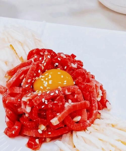 牛肉刺身是一道经典的日式料理,主要食材为新鲜的牛肉,通常选用牛颈肉或外脊后端,这些部位的肉质鲜嫩且油花丰富。制作牛肉刺身的过程相对简单,以下是详细的步骤和一些小贴士: