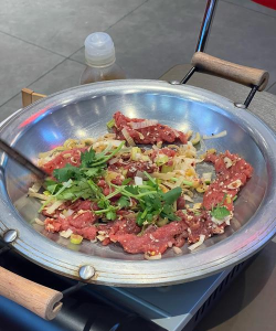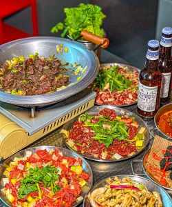 在火锅里涮牛肉时,可以根据个人口味和火锅类型(如麻辣、清汤、番茄、菌汤等)搭...