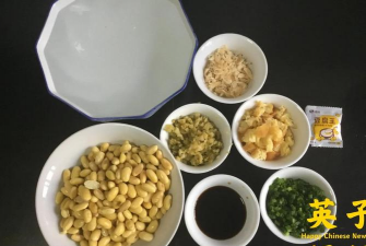 准备黄豆和水干黄豆用清水冲洗干净,再浸泡一晚上,泡到用手能捏碎即可,捞出沥干水分。