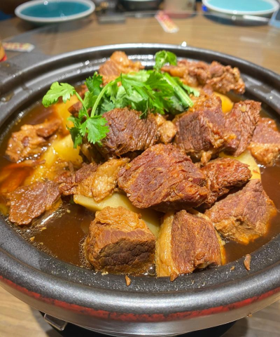 - 倒入生抽、老抽调色,加入焯水后的肉汤,小火慢炖1-1.5小时,至肉质酥烂。 - 中途可加入香菇、土豆等配菜增加口感。