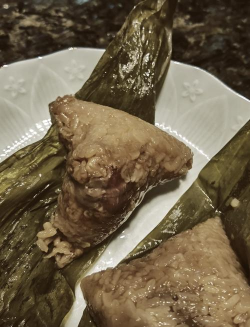 9. 按煮饭键把粽子煮熟,夹出沥干水分即可。
