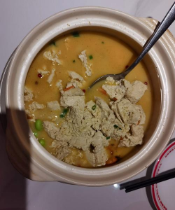 二、三鲜木桶豆腐汤# 材料主料: 豆腐200克、瘦肉片100克、虾仁100克、蘑菇50克、豆芽50克 辅料