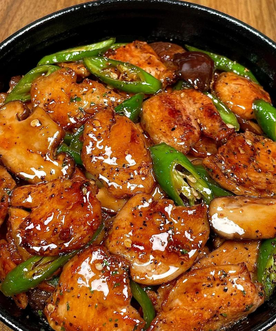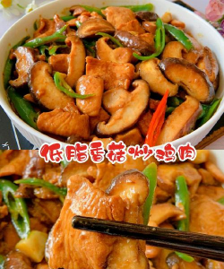 - 汤汁浓稠时,加入尖椒翻炒至断生,勾芡收汁后撒葱花即可。### 二、香菇滑鸡(鸡胸肉+香菇)