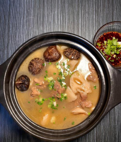 - 砂锅或炖锅中加入清汤或清水,放入焯水后的排骨、姜片、葱段,大火煮开后转小火慢炖30分钟
