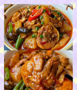 - 收汁时汤汁浓稠,鸡肉软烂入味,香气扑鼻