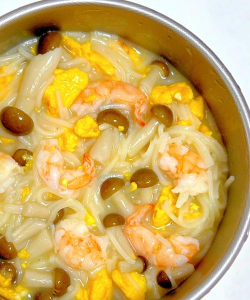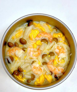 # 4. 组合与调味混合食材:将煮好的面条或面皮与炒好的蔬菜、虾滑混合