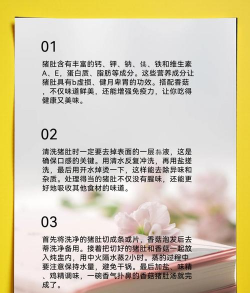 四、小贴士猪肚易吸附异味,清洗时可用白酒、白醋、盐混合水多揉搓。