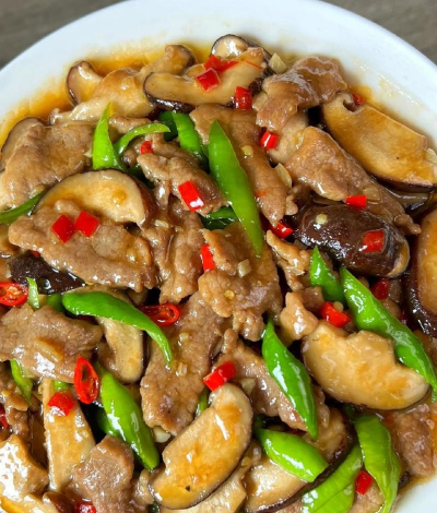 一、香菇炒肉片特点:鲜香入味,肉质鲜嫩,适合搭配青椒、红椒等蔬菜。