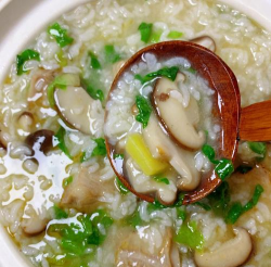 四、成品特点风味: 融合香菇的鲜香与鸡肉的嫩滑,粥体浓稠且味道均衡。 便捷性