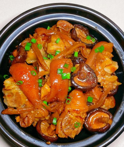 一、香菇炖猪蹄汤特点:汤汁鲜美,营养丰富,适合冬季滋补。