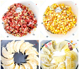 # 3. 包制饺子取饺子皮放馅料,对折捏紧边缘,包成三角形或月牙形饺子