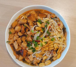 香菇鸡丁米线是一道经典的家常菜,结合了香菇的鲜香与鸡肉的嫩滑,汤底浓郁,适合搭配米饭或面食。以下是两种常见做法供参考:
