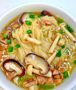 一、基础款香菇鸡汤面# 材料:主料:鸡胸肉/土鸡腿肉 400克、香菇 4朵、细面条 200克