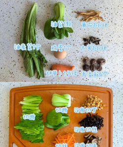 # 二、香菇油菜炒制香菇预处理:香菇温水泡发后切片,油菜洗净切段。