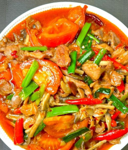 选材: 番茄选择成熟的品种,颜色鲜红、汁水丰富;香菇需新鲜无霉变。- 变化