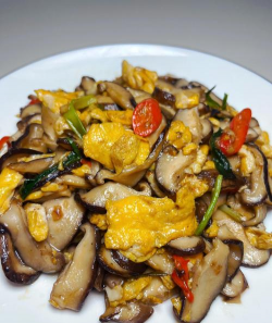 - 放入炸好的香菇(或杏鲍菇),翻炒均匀;