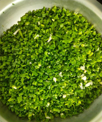 - 加入香菇碎和辣椒碎,继续搅拌均匀