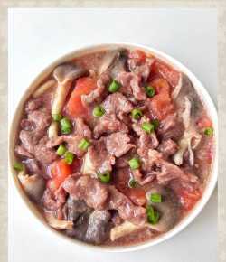 通过以上步骤,您可做出鲜香浓郁的番茄牛腩炖香菇,搭配米饭食用更佳。