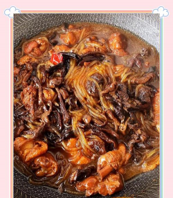 通过以上步骤,可做出汤浓味鲜、肉质酥烂的香菇粉条焖鸡。