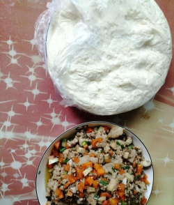 - 胡萝卜、白萝卜切丝后焯水1-2分钟,捞出过凉后挤干水分;香菇切丁后与焯水蔬菜混合。