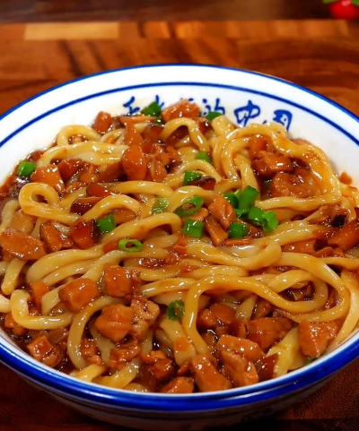 - 将卤汁浇在煮好的面条上,撒上葱花、香菜或辣椒油提味。