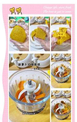 二、制作步骤# 1. 胡萝卜与红枣预处理胡萝卜去皮切块,冷水上蒸锅,大火蒸15-20分钟至软糯(时间根据胡萝卜大小调整)