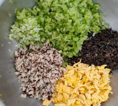 - 木耳泡发后洗净切丝,香菇去根(若使用鲜香菇);