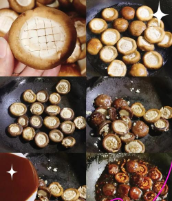 二、制作步骤香菇预处理- 清洗香菇,沥干水分后倒置在案板上,用刀在菇伞表面划出交叉网格纹路,方便入味。