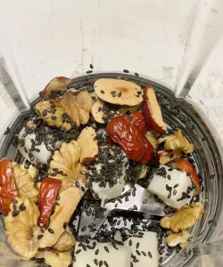 - 红枣蒸熟后去皮捣成泥状,可用料理机或研磨碗完成。