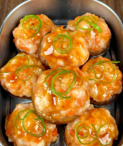 香菇酿虾丸可整型或滚圆,大小根据喜好调整
