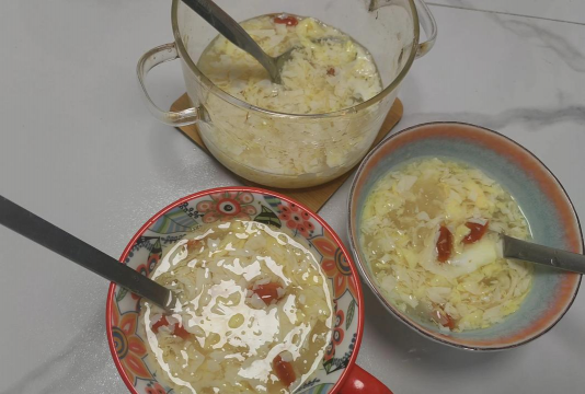 - 根据口味调整甜度,煮至汤汁浓稠即可关火。 - 可撒上枸杞或葱花提香,盛入碗中即可食用。