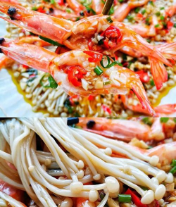 虾身裹上蒜蓉和香菇丁,淋上生抽、老抽、蚝油,腌制15分钟。2. 蒸制:放入蒸锅,大火蒸5-8分钟至虾变红熟透。3. 调味收汁:取出后淋上热油激发香味,翻炒均匀即可。