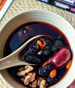 - 桑葚干浸泡15分钟,鲜桑葚洗净去蒂;