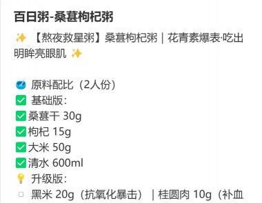 桑葚红枣小米粥是一道营养丰富的粥品,结合了滋阴、补虚、益气血的功效,适合早餐或晚餐食用。以下是两种常见做法供参考: