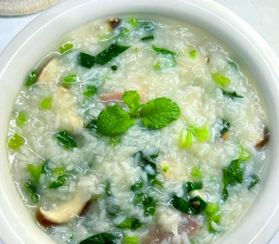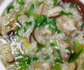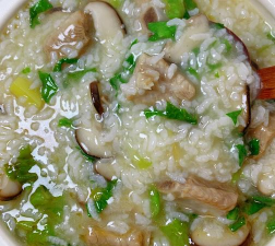 菌菇混合粥:加入虾米、竹笋、芹菜等搭配,增加层次感。