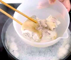 - 煮至猪蹄变色后捞出,用热水冲洗干净备用。
