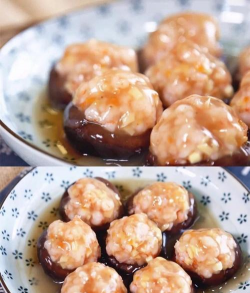 通过以上步骤,可做出色香味俱全的香菇酿虾丸,搭配米饭食用更佳。