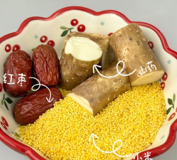 - 先煮糯米/大米至半熟(约10分钟),再加入山药块继续煮20分钟。